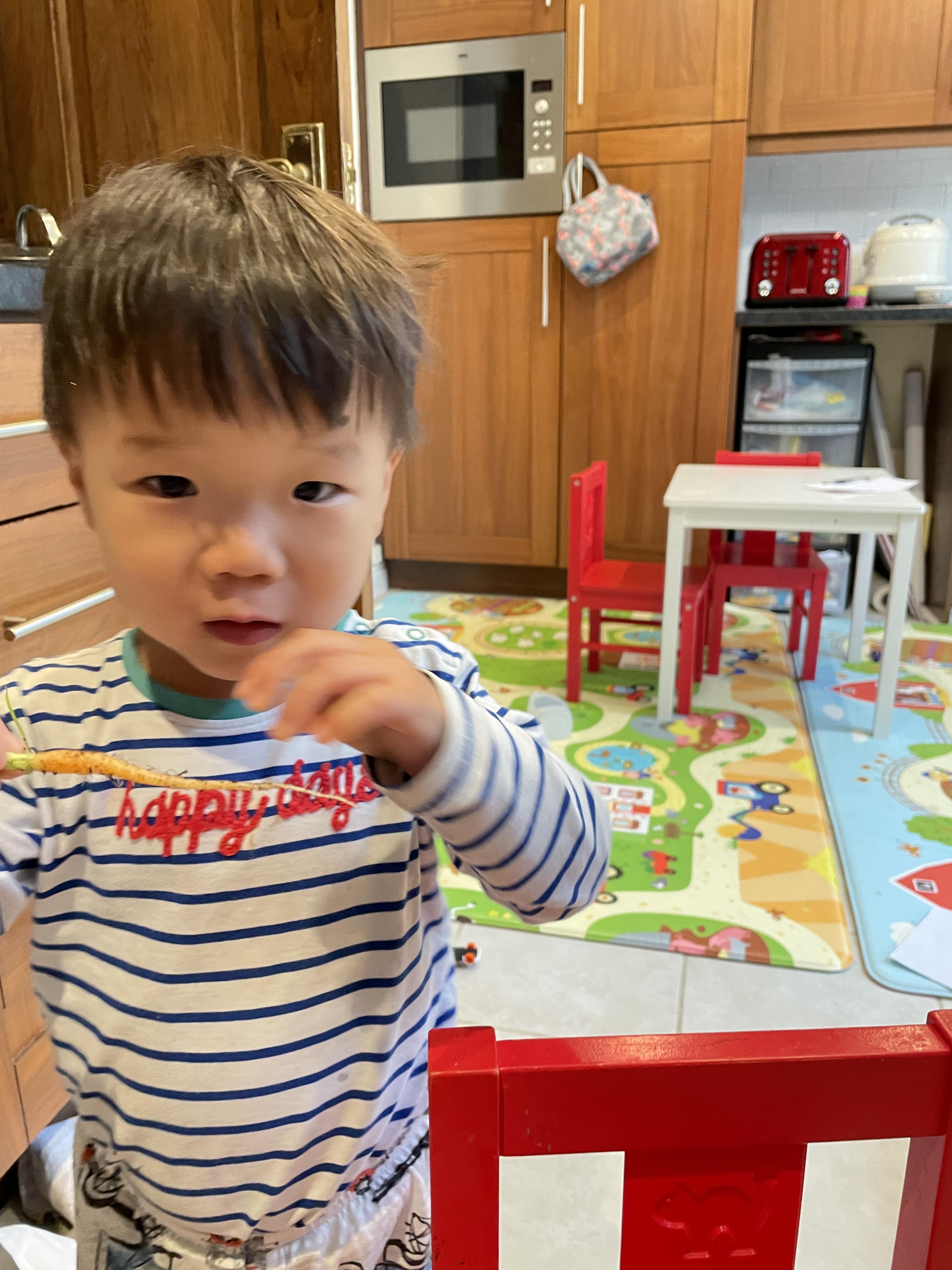 저희 잭... 사진으로 보니 당근에 흙만 씻어냈지 자기 손에 흙은 다 씻지도 않은채로 당근을 먹고 있네요. ㅠㅠ 엄마라는 사람은 아이 사진 찍느라 아이 손에 묻은 흙은 사진을 올리는 지금에야 발견하다니. 소셜미디어의 폐해입니다. 흑흑. 아이야, 미안하다.