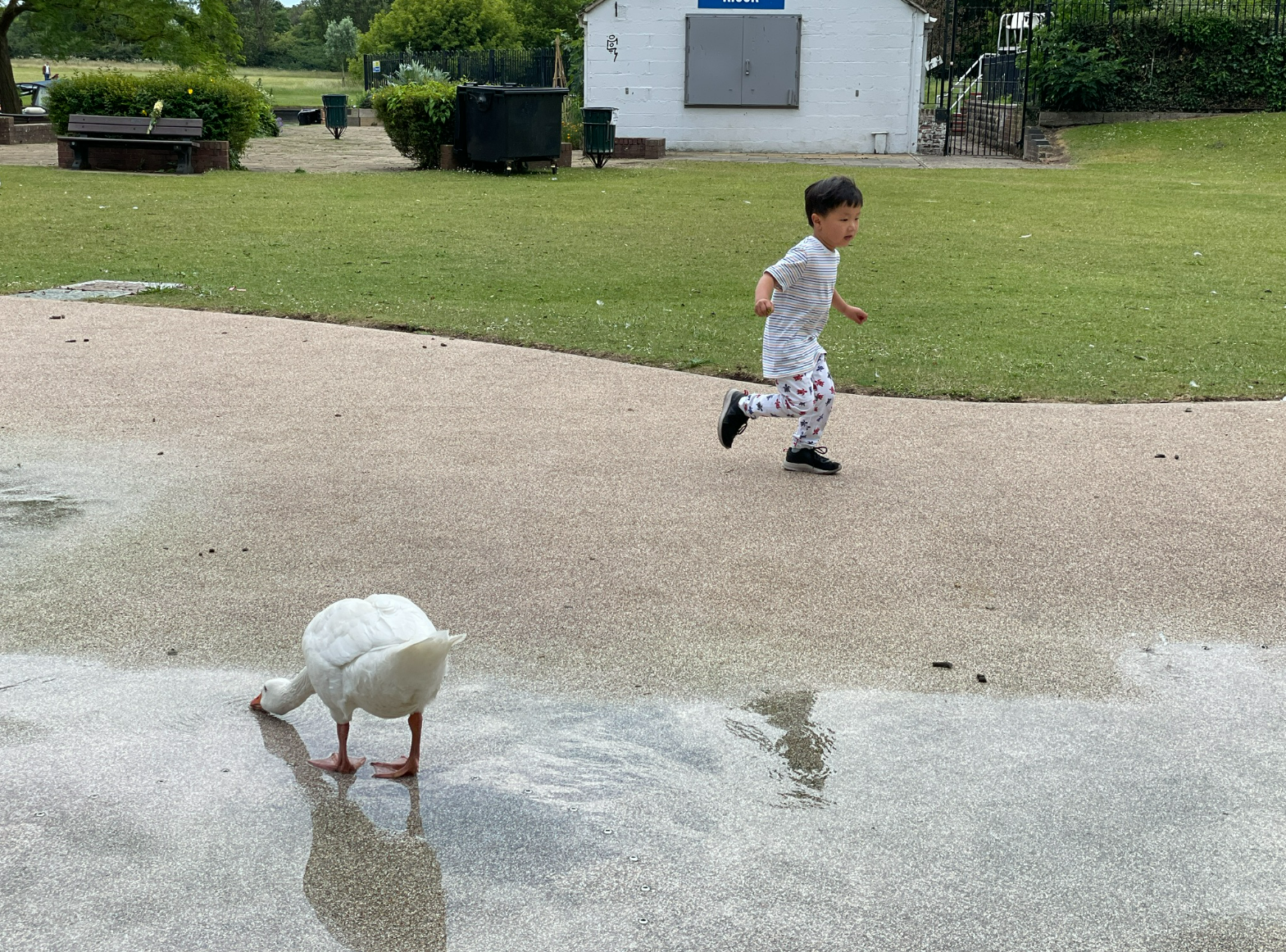 비록 헤이피버로 고통스러울지언정 그렇다고 영국의 여름을 즐기지 않을 수는 없습니다. 그래서 일요일에도 저희는 아이들과 함께 놀이터로 나갔습니다.