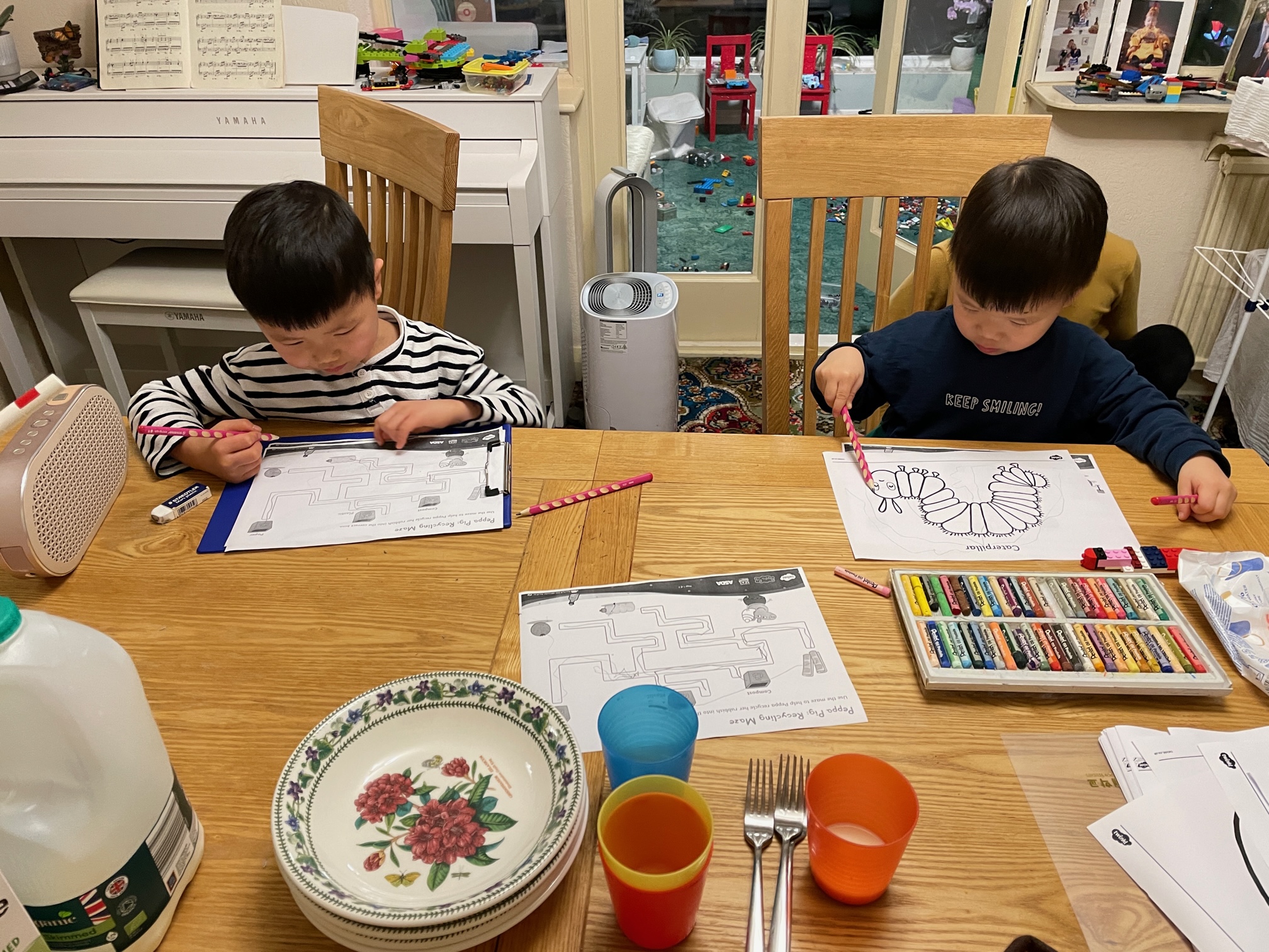 그러나 에너지 충만한 저희 아들은 늘 싫다 하기 일쑤였는데, 그 아이를 어루고 달래며 더 해 볼만한 능력과 에너지가 저에게는 부족했어요. 잭 보다 두살 더 어린 동생이 늘 함께 있다 보니 애들 둘 뒤치닥거리하며 꽉 채운 3년간 재택근무하는 남편까지 챙기며 삼시세끼 밥을 하며 살림을 해야 하다 보니 아이 공부는 뒷전이었죠.