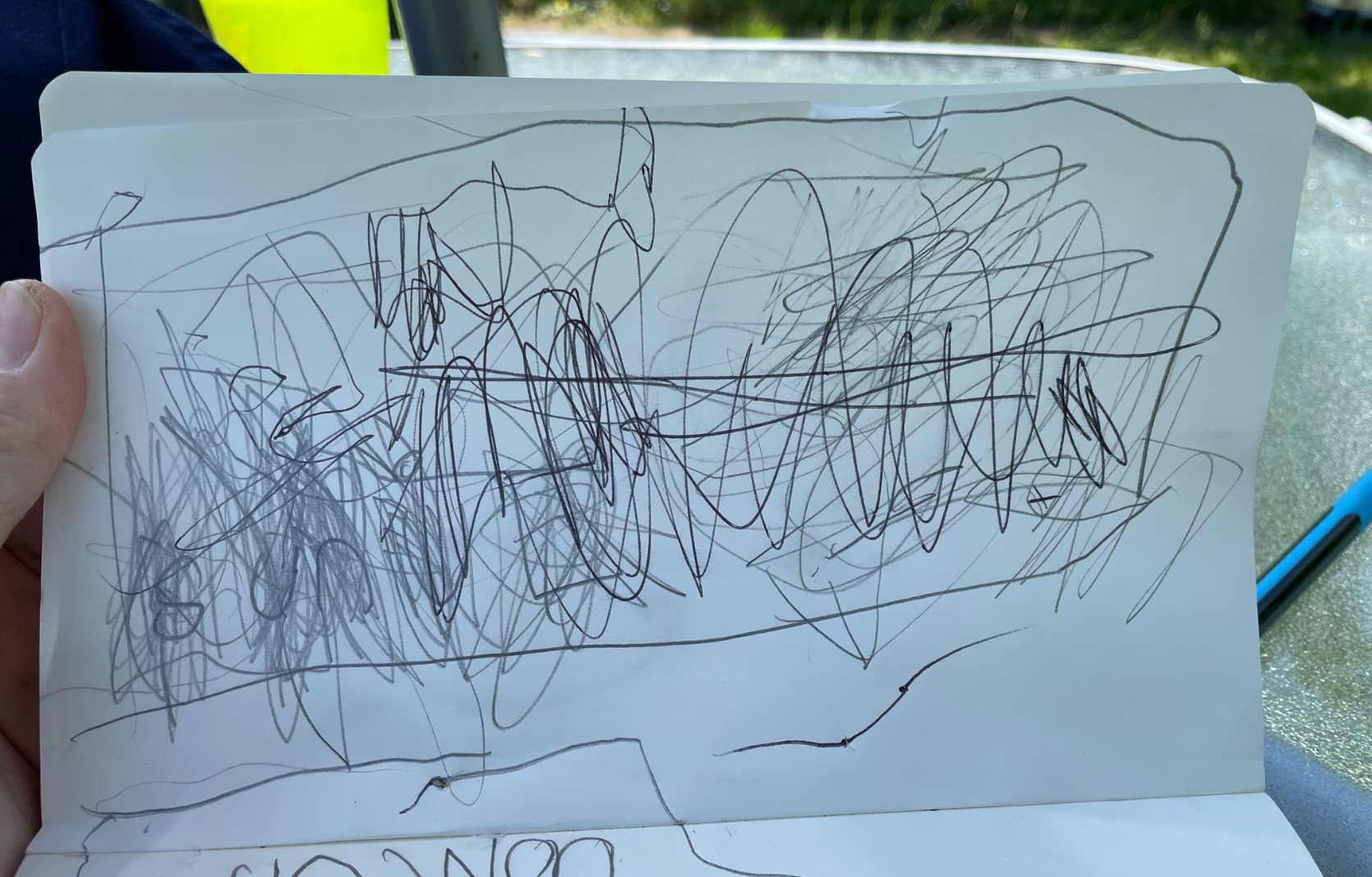 그랬던 저희 아이가 며칠전 한층 발전한 손글씨를 선보였습니다. 때는 바야흐로 2023년 6월 4일, 날씨 좋은 일요일 오후. 아이들은 가든에서 놀고 있고, 남편은 가든일을 하고 있는 평화로운 모습에 잠시 감상에 젖은 저는 이런 순간이 또 있을까 싶어 가든 의자에 앉아 제 수첩에 일기라도 끄적이려고 수첩을 들고 나갔습니다. 나가자마자 아이들이 미숫가루를 타달라고 주문하는 바람에 다시 집으로 돌아가 미숫가루를 만든 후 가든으로 나오는데, 왠일로 두 아들이 머리를 맞대고 뭔가를 열심히 하고 있네요. 뭘 하고 있나 와서 보니 제 수첩을 펴서 둘이서 낙서를 하고 난리가 났습니다. 바로 이렇게..