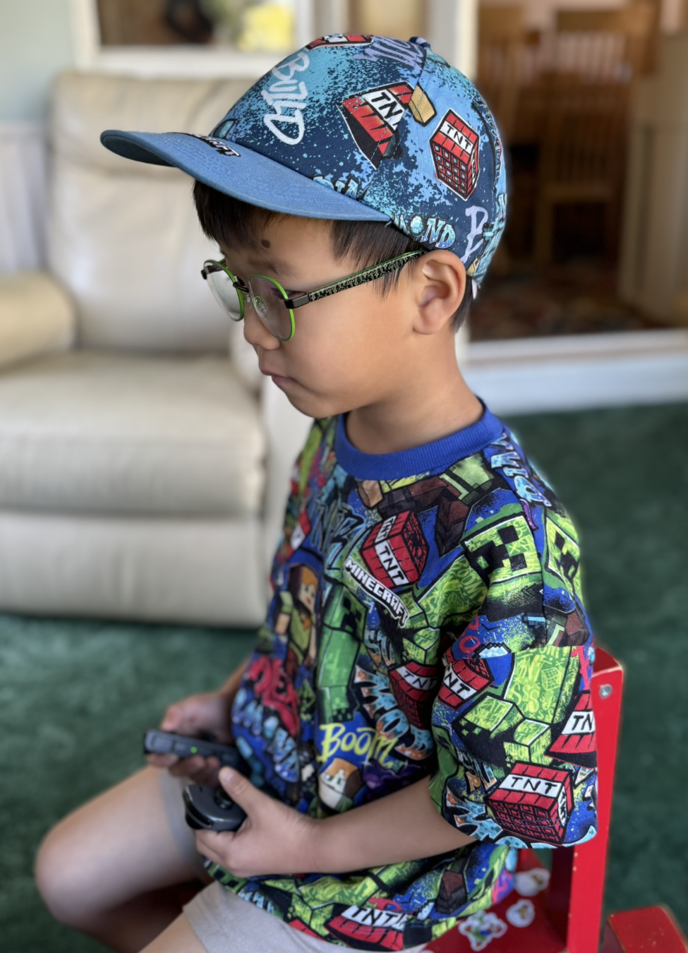 안경점에 가기 전날이었던 금요일에 마침 아이들과 동네 옷가게에 가서 마인크라프트 티셔츠와 모자를 사줬는데, 거기에 이젠 안경까지 더해져서 우리 아이는 마인크라프트 영화 그 자체가 되었다. 안경착용을 열심해 해서 3개월 후에는 눈 검사 결과가 더 나아졌기를 바라는 마음이다.