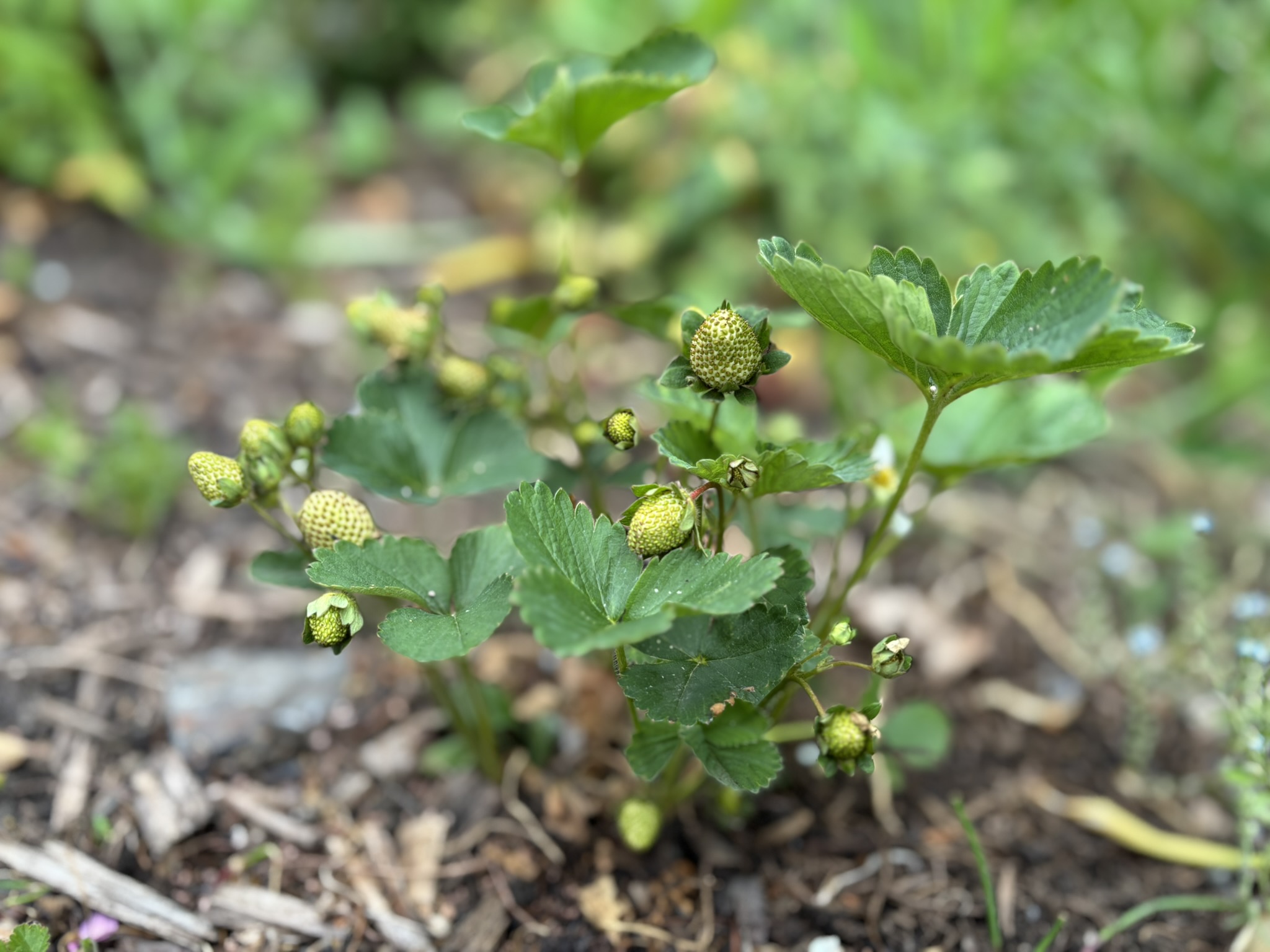 딸기를 좋아하는 아이들. 딸기 모종을 사서 심은 게 다행히 죽지 않고 올해도 딸기 열매를 맺고 있다. 우리가 먹을 수 있는 건 거의 없고, 달팽이와 새들의 밥이 된다.