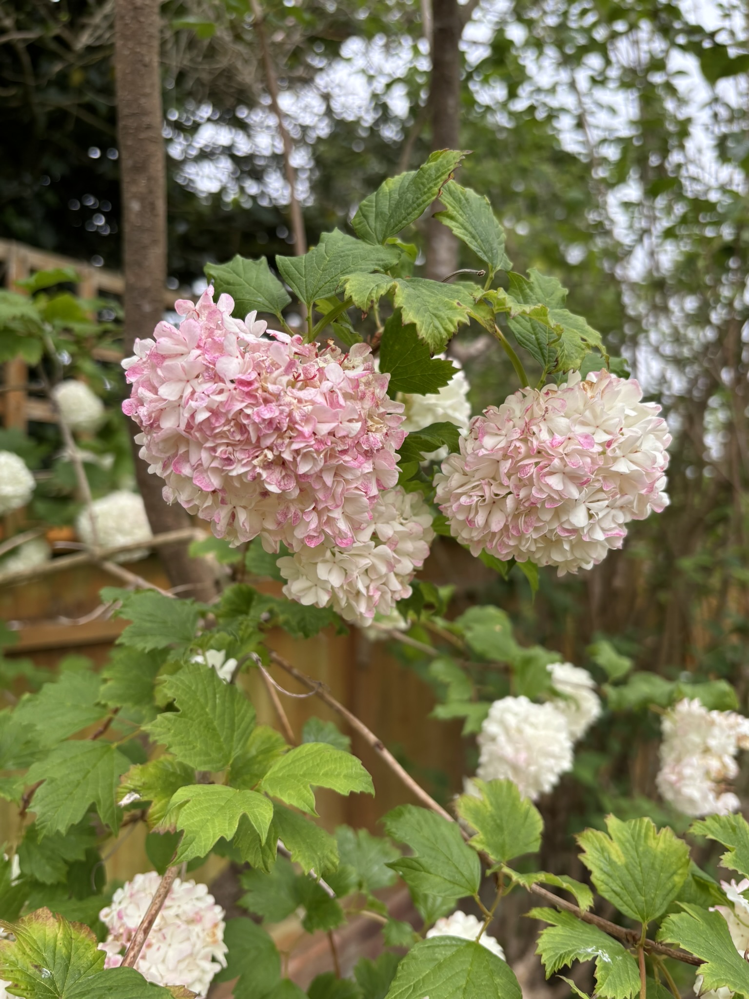 작년 해충 피해를 입은 꽃나무. 올해도 해충에 둘러싸여있지만 남편이 계속해서 관리를 해주고 있다. 하얗게 올라온 꽃들이 분홍색으로 물들어가는 모습이 정말 예쁘다.