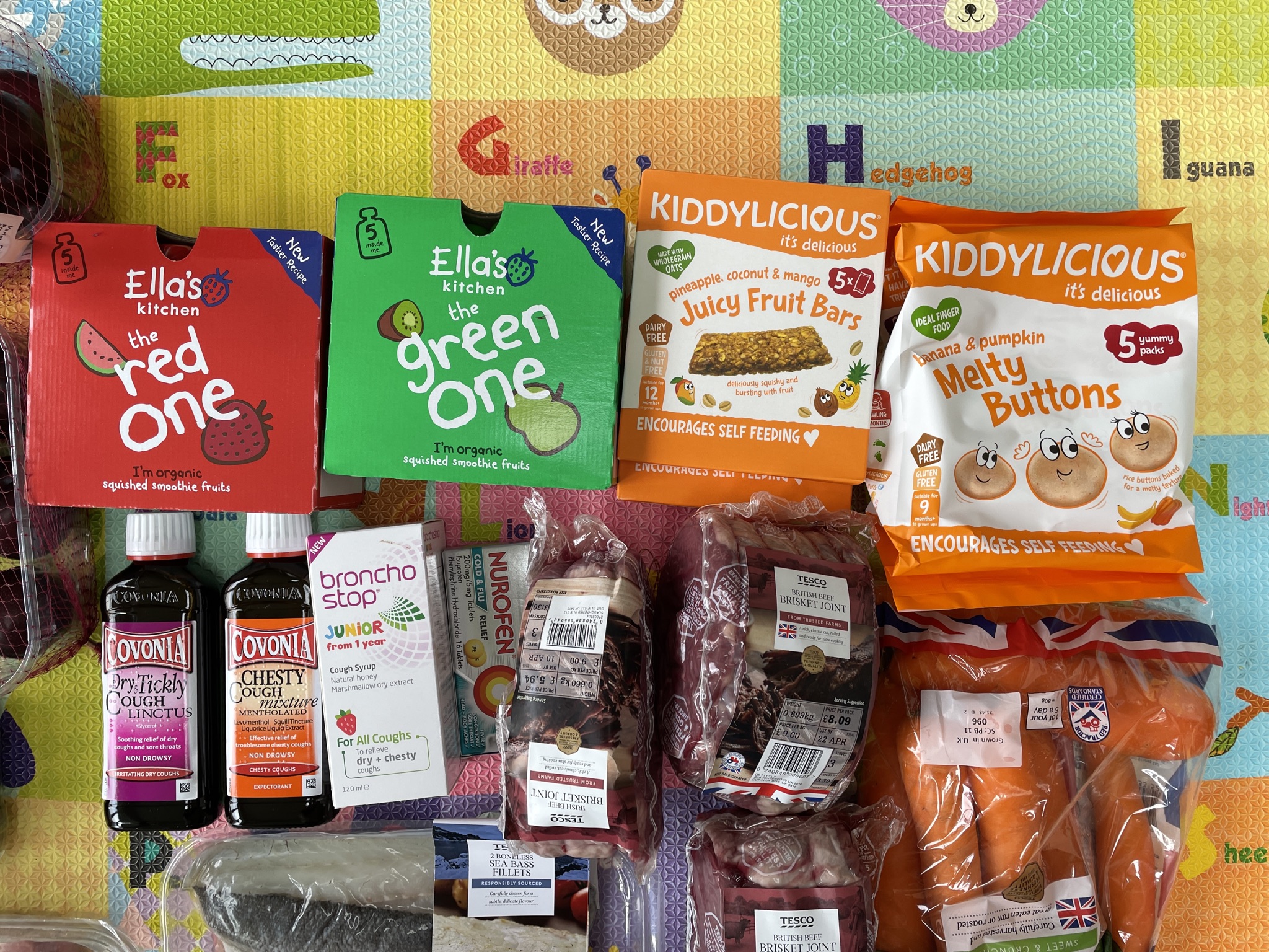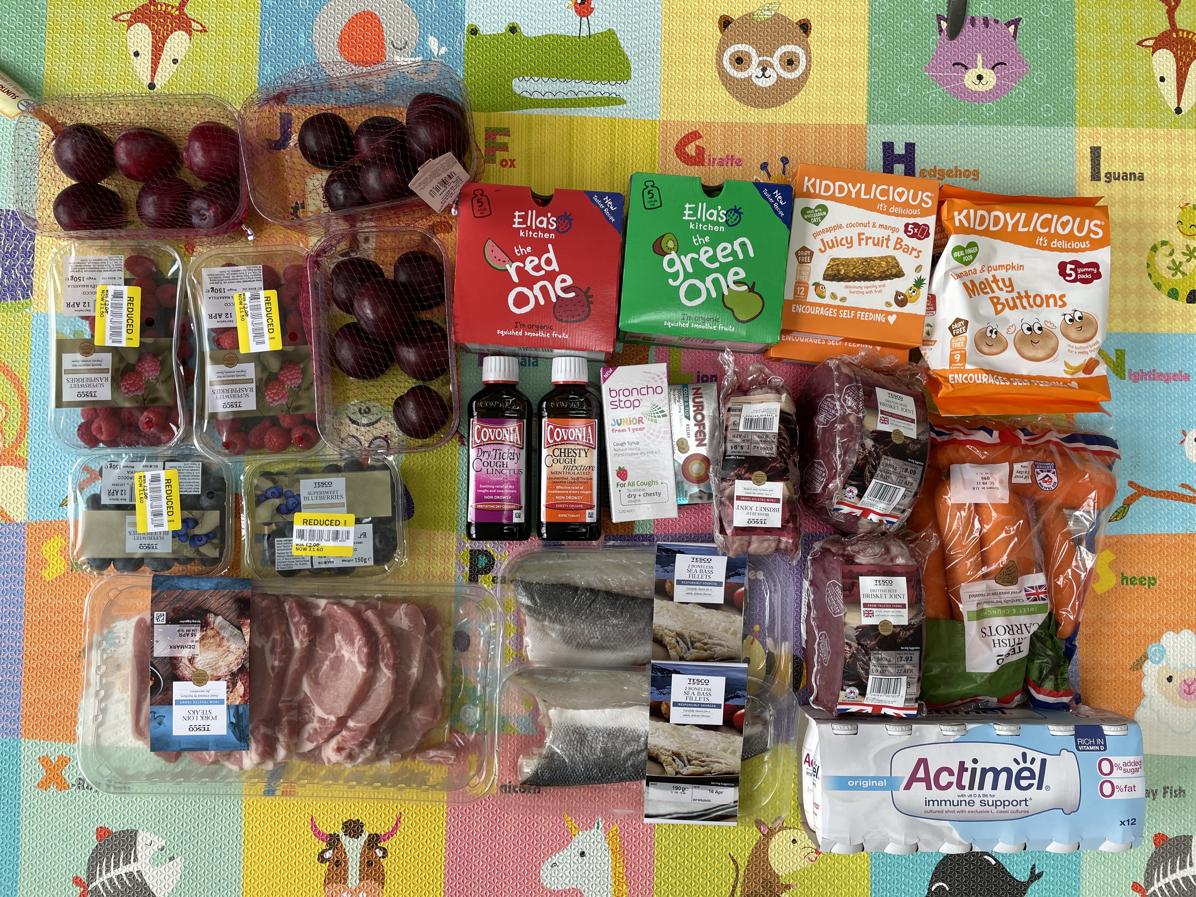얼마전 아이들을 어린이집에 내려주고 테스코 엑스트라에 들러 이것 저것 간식과 식재료들, 아이들과 남편의 감기약을 샀습니다. 아래 사진에 보이시는 만큼.. 아이들이 좋아하는 과일 자두, 라스베리, 블루베리를 사고, 돼지고기, 생선, 당근, 소고기 잔뜩, 당근, 애들 먹을 과일퓨레, 오트 바, 과자, 요거트, 각종 기침 시럽과 감기약. 이 만큼의 식재료를 사고 나온 금액은 70파운드. 한국돈으로는 10만 8천원쯤 될 것 같습니다. 11만원 장보기라고 했어야 하네요.