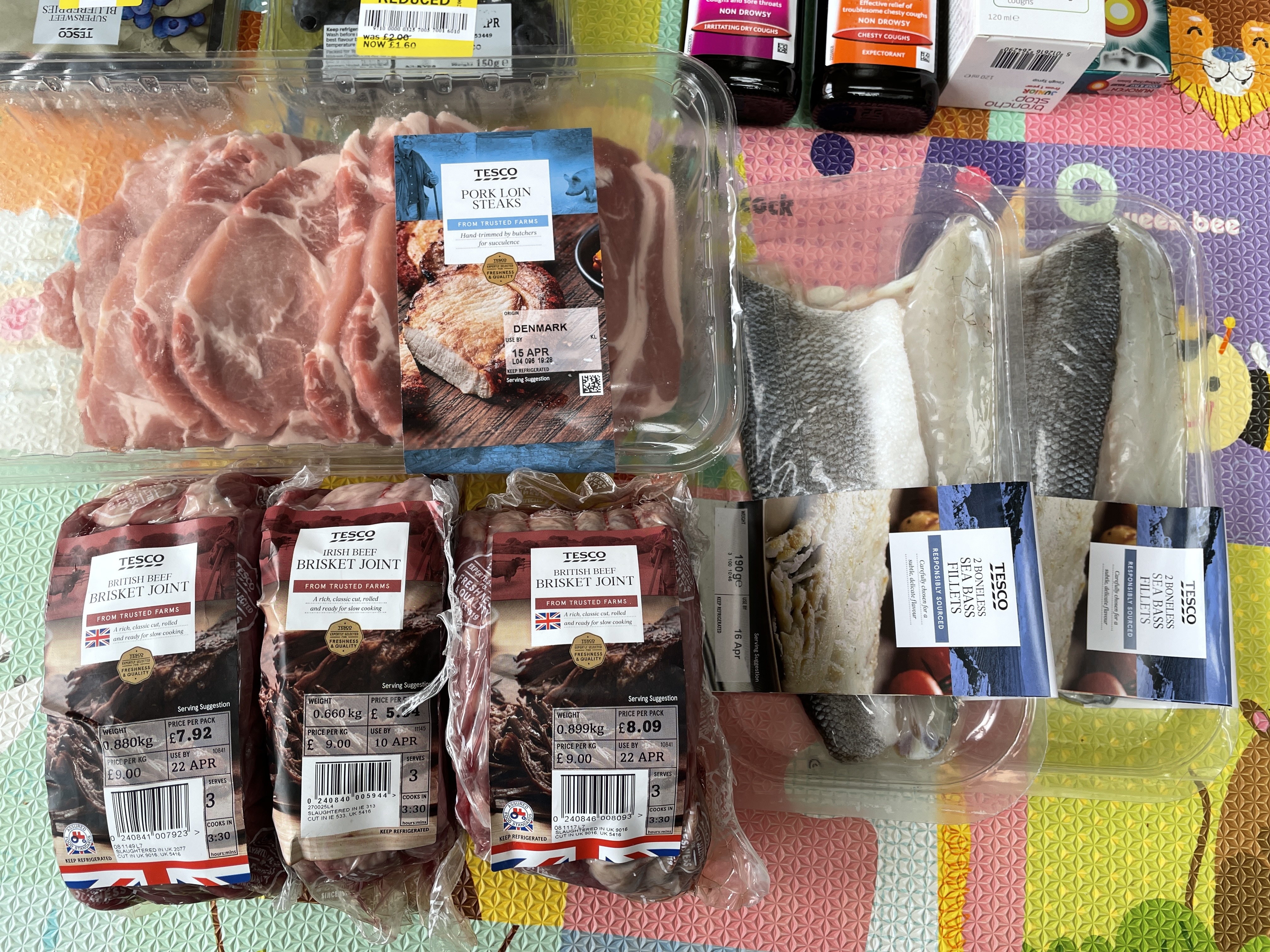 이날은 돼지등심이 좋아보여서 돼지등심도 사고, 소고기 양지 2.5킬로, 생선도 두 팩 샀어요. 이 날 산 소고기로 장조림을 한솥 만들어서 절반은 꺼내먹고, 나머지는 냉동실로 직행. 영국은 확실히 한국에 비해 고기 가격이 저렴합니다. 그래도 채소와 비교하면 고기가 비싸긴 하지만 말이죠.