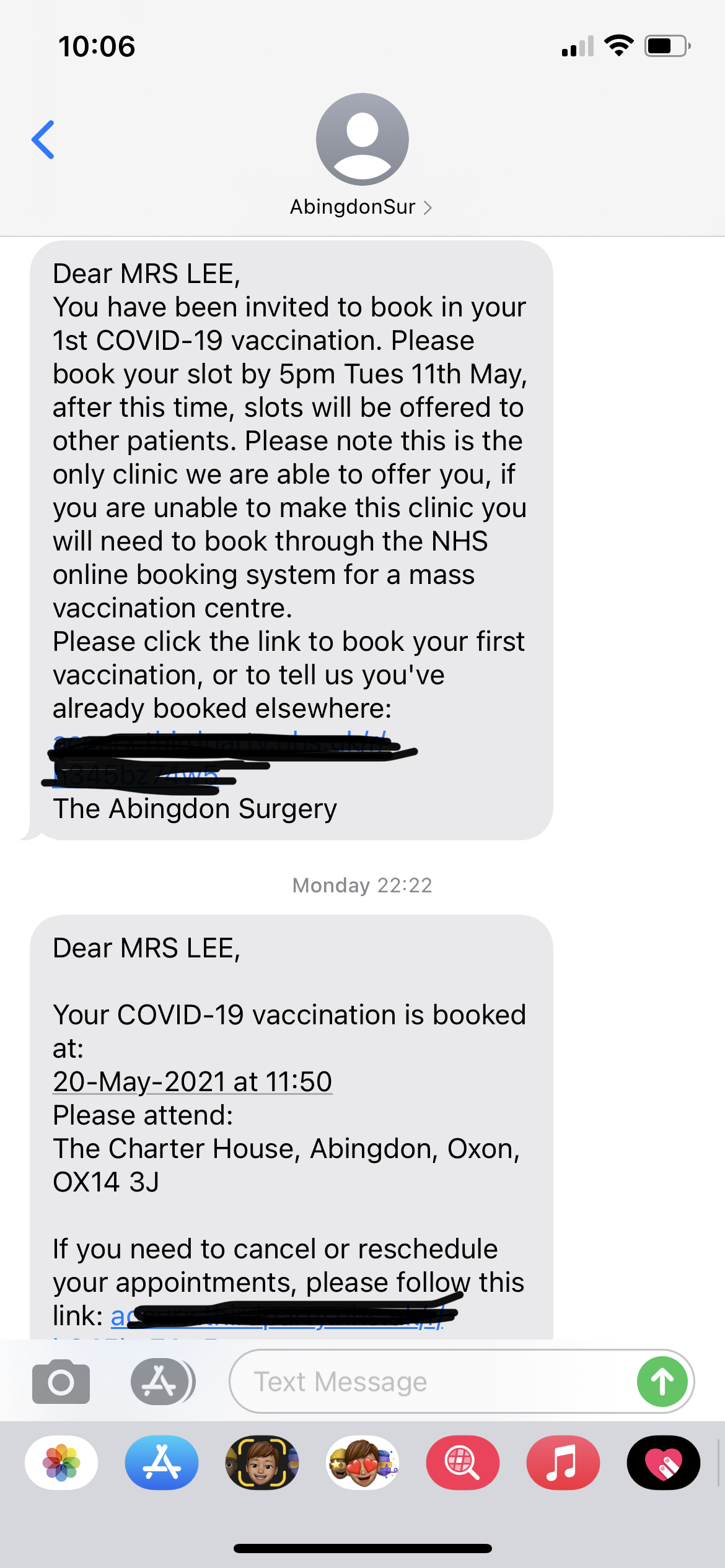 남편에게는 2주 전쯤, 나에게는 지난주, 백신 접종 가능 연령이니 백신 접종을 예약하라는 문자가 왔다. 예약을 위해서는 각자의 NHS (National Health Service: 국민보건의료서비스) 넘버와 생년월일 정