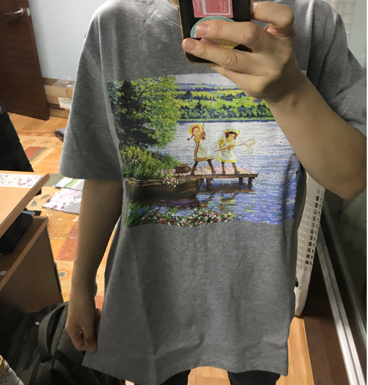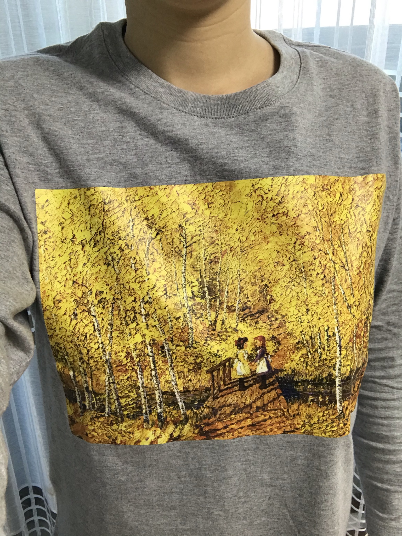 제가 입은 디자인은 모두 빨강머리 앤 그림으로, 작년 일본상품 불매운동이 일어나면서 이 옷가게 사장님이 본인의 소신으로 이 그림들에 대한 로열티 계약을 중단하셨다고 해요. 그래서 더 이상 정식으로 판매되지 않는 제품이라고 하고, 그 외에 요즘은 반고흐 등의 여러 다른 디자인으로 판매하고 있어요.
