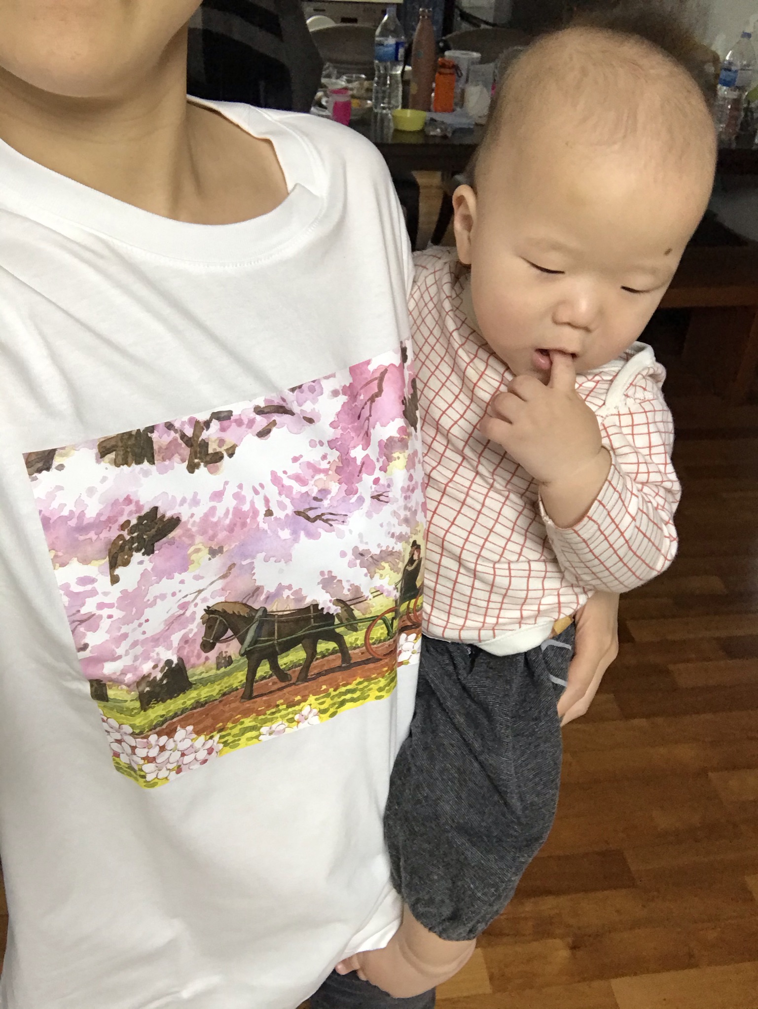 언니는 그 옷을 일년 넘게 거의 매일같이 입으며 빨래건조기에 매번 돌려도 옷의 프린트가 떨어지지 않는 정말 좋은 옷이라며, 그날 입고 있던 티셔츠를 친정 집에 있는 동안 저에게 편하게 입으라고 주고 부산으로 돌아갔습니다.