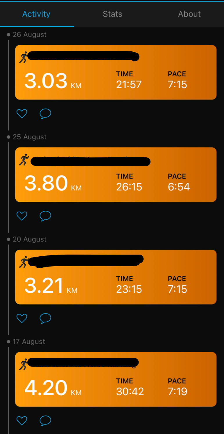 그런 상황 속에서 저희는 어떻게 살고 있을까요? 바로 달리기로 살고 있습니다. 틴틴이 차 사고로 인한 부상에서 어느 정도 회복한 후 저희는 건강을 위해 다시 달리기를 시작했어요. 그러나 며칠 달리기를 하며 건강을 회복해가기 무섭게 아이들 어린이집이 문을 닫았는데, 그 얼마간 달리기를 했다고 어린이집이 문을 닫는 그 기간 동안 혹독한 육아 시간을 버티는데 도움이 되더군요.