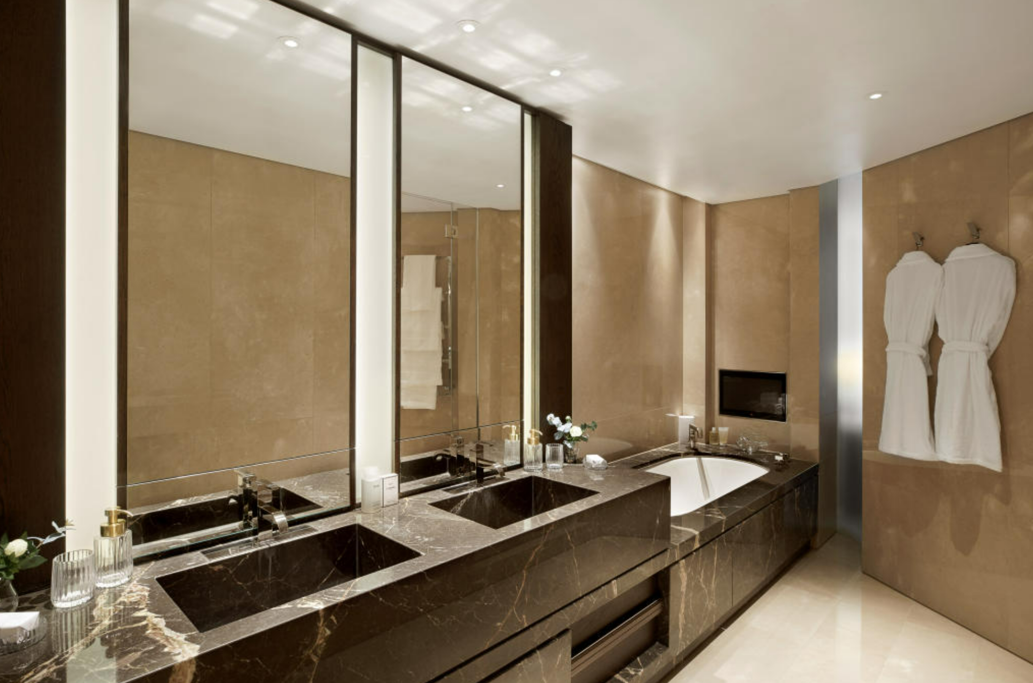 다음은 욕실. 왜 좋은 집들은 욕실에 세면대를 두 개씩 두는 거죠? 둘이서 같이 세수하고 양치할 건 아니지 않나요? 세면대 두 개 나란히 있는 집에 살아보지 못한 저는 이해할 수 없는 구조입니다.