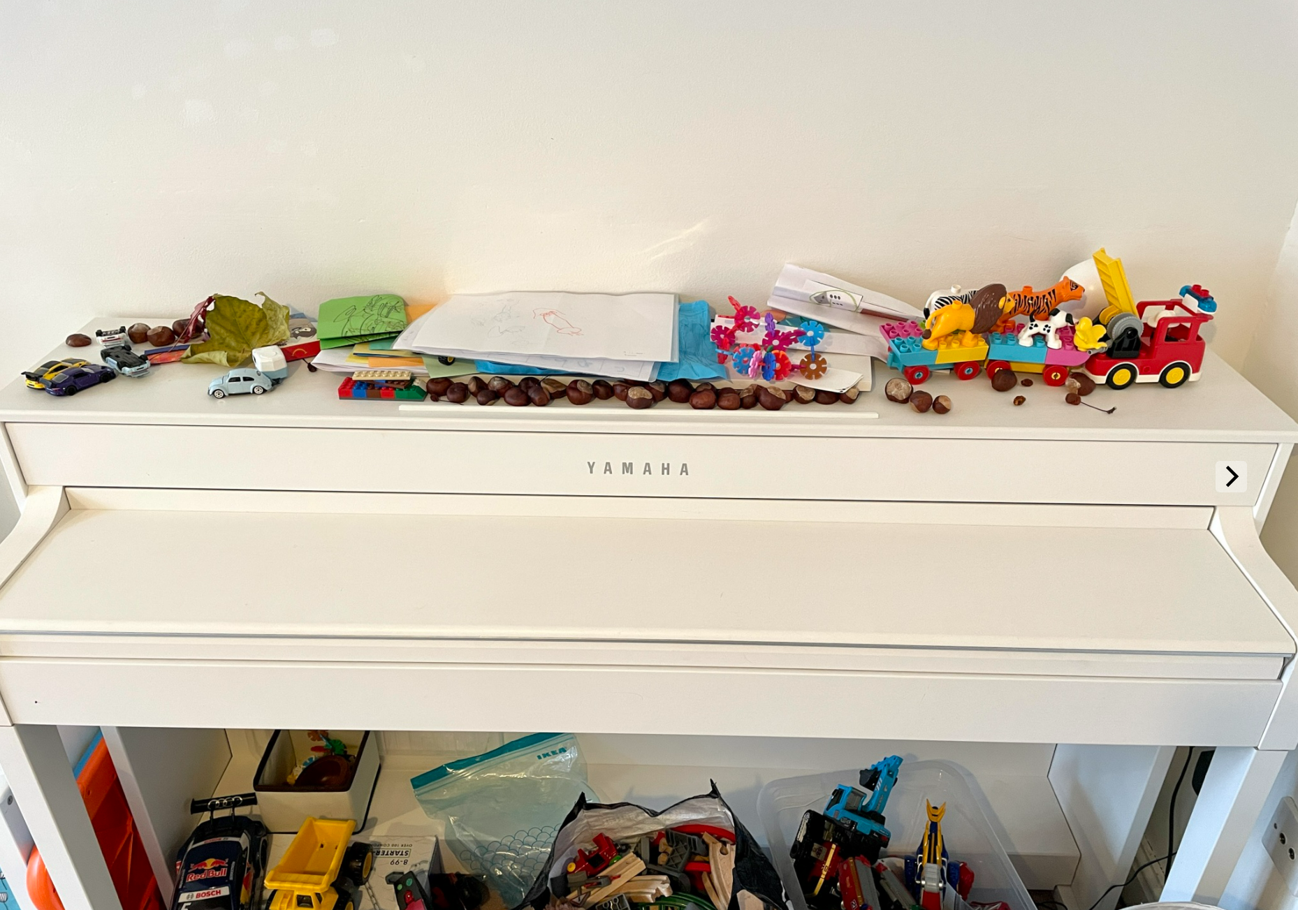그런데 이제 뚱이도 피아노를 자기만의 용도로 사용하기 시작했다. 자기가 좋아하는 자동차를 주차해두는 주차장으로.
