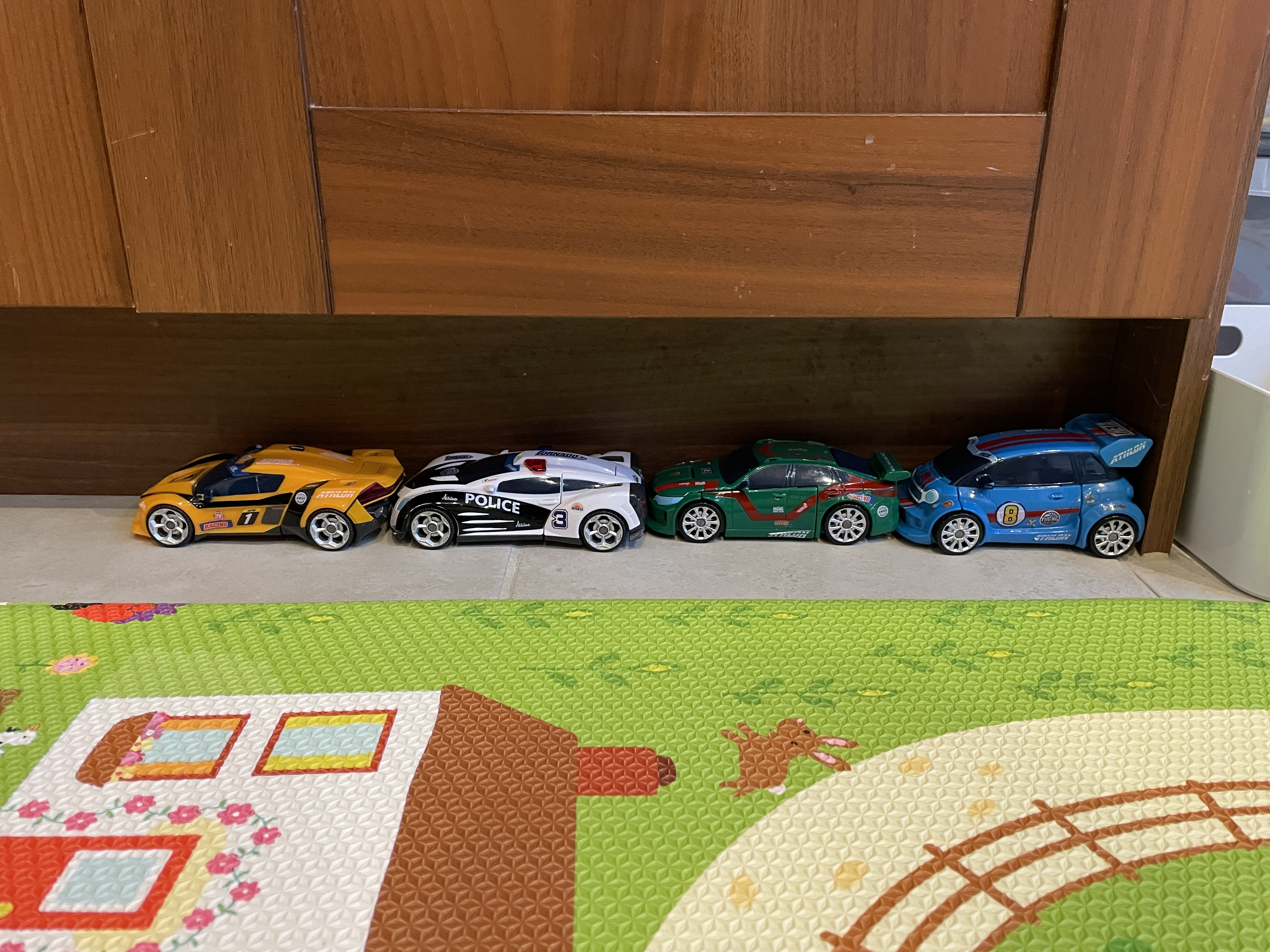 덧: 아이들은 미니카를 못하게 된 대신, 큰 자동차를 갖고 다툼을 시작하려는 기미를 보이고 있다. 오늘 아침 싸움의 원인이 될랑말랑했던 자동차들.