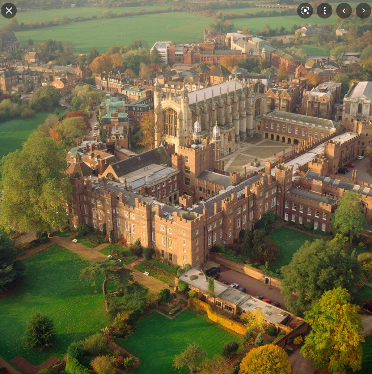 학교 캠퍼스도 어마어마하다. 아래는 구글에서 검색한 이튼 칼리지 사진. 현 영국 총리인 보리스 존슨도 이 학교 출신이다. 영국 락다운(봉쇄기간) 중에 고위 정치인들끼리 모여서 락다운 규정을 어기고 술마시고 파티를 벌인 것으로 알려져 그에 대해 제대로 해명하라는 정치적 압박을 받고 있는 현 총리가 바로 이 학교 출신.