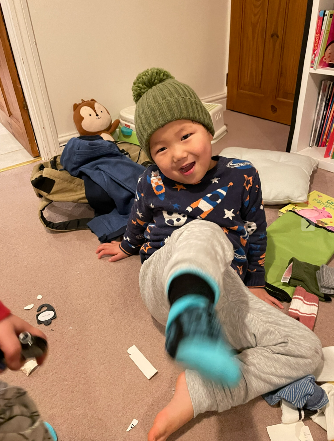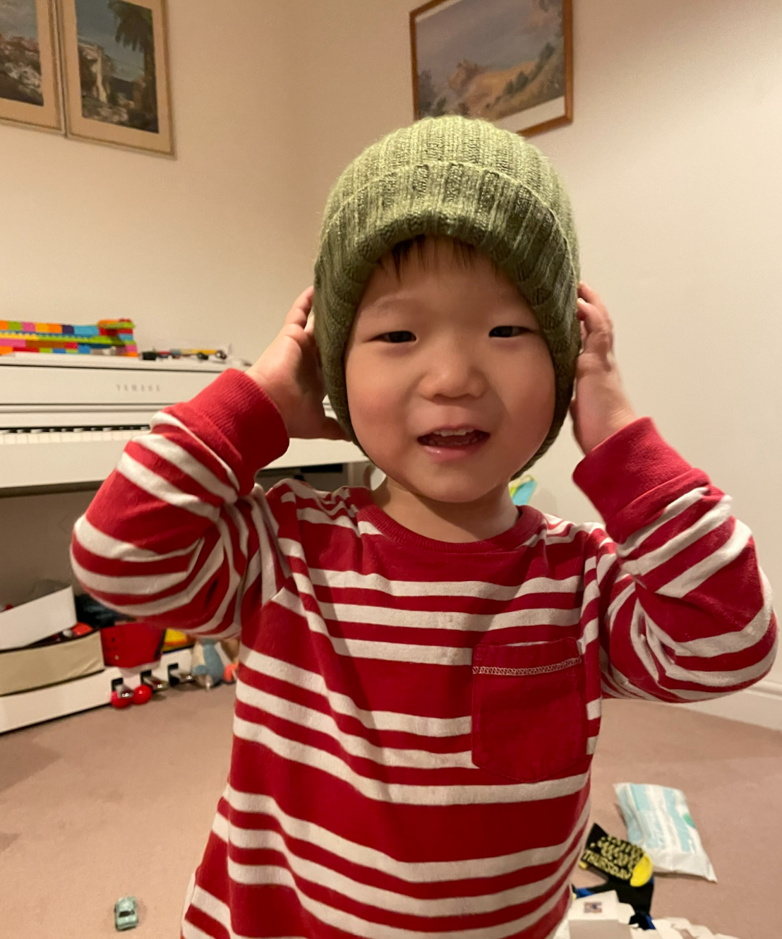 어린이집에서 다른 친구들은 모두 털모자를 쓰는데, 저희 아이들만 털모자를 안 썼어요. 모자가 싫대요. 그러다 친구들이 내내 모자 쓰는 걸 봐서 그런지, 잭도 어느날 그러더라구요. 자기도 머리에 공이 달린 모자를 쓰고 싶다고.