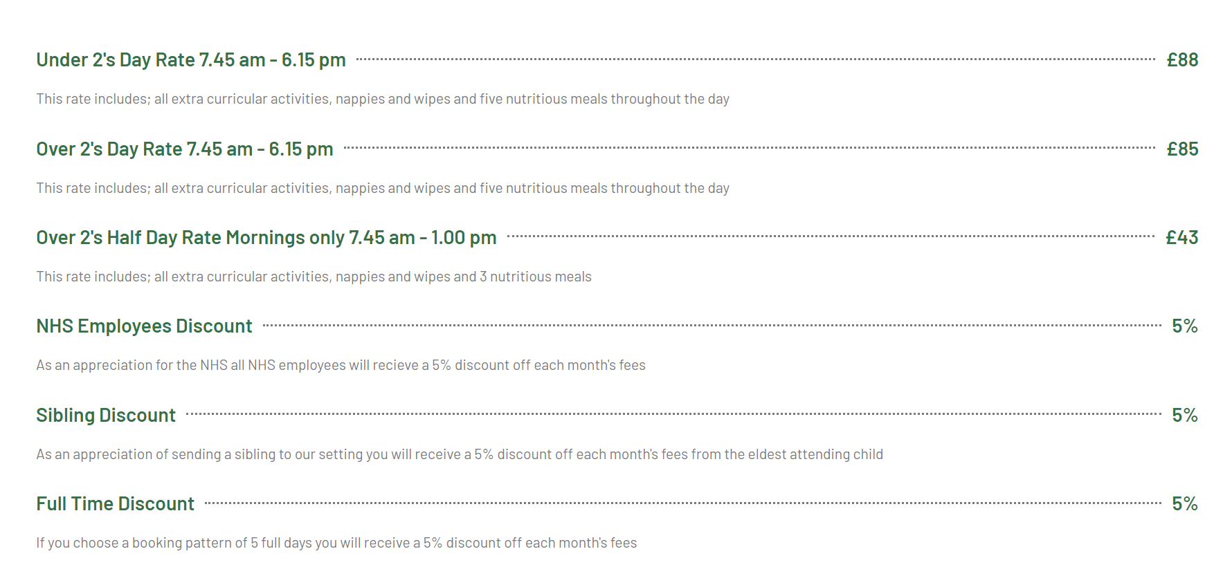 실제로 찾아보니 이 K 지역도 어린이집 비용이 만 2세 이상일 경우 하루에만 85파운드네요? 하루에만 14만원이에요.