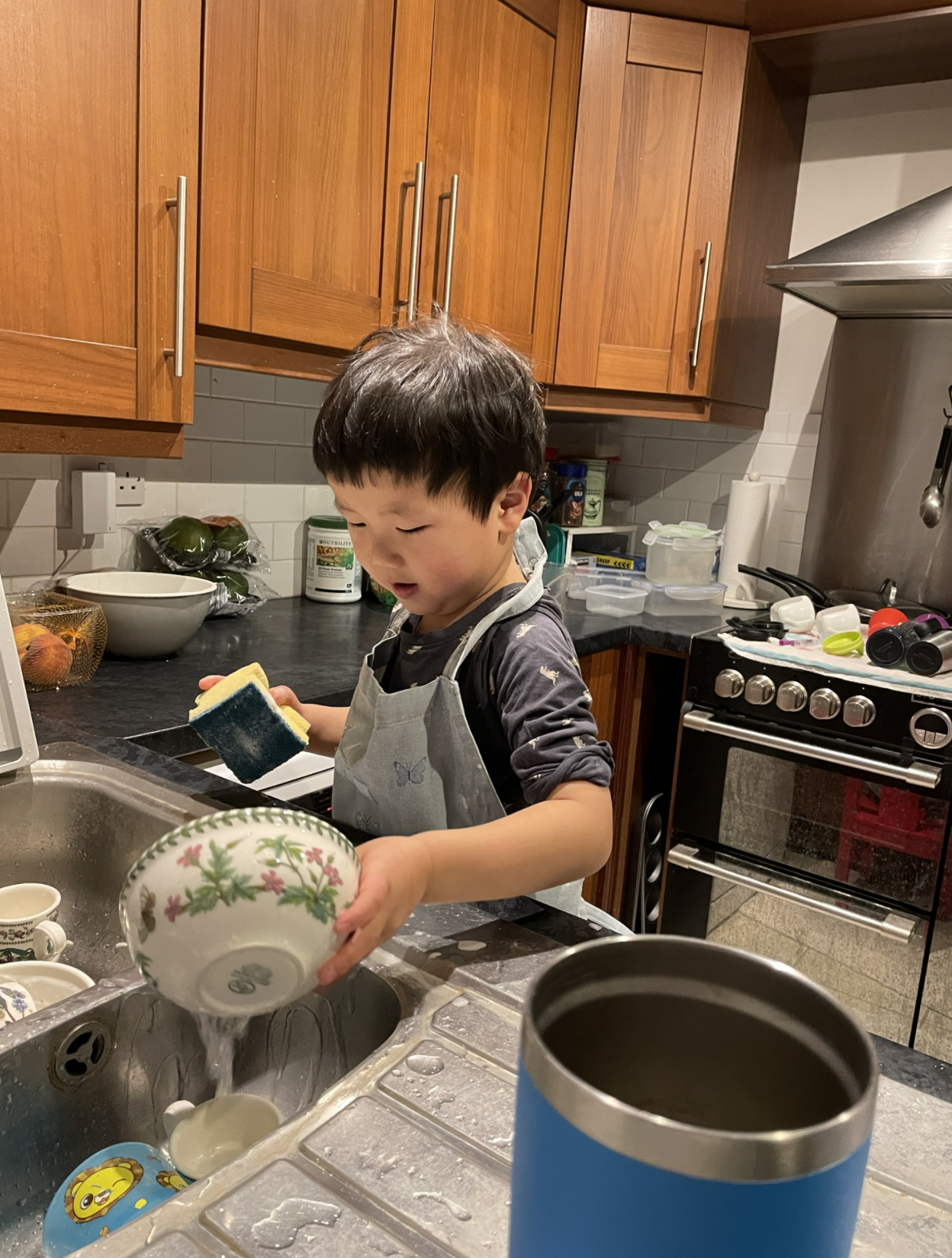 잭이 좋아하는 설거지. 어릴 때부터 그렇게 설거지를 하고 싶어하더니, 이제 좀만 더하면 제대로 설거지를 할 수 있을 수준이 되어가고 있는 듯하다. 무엇보다 폼만큼은 그럴싸하다는!
