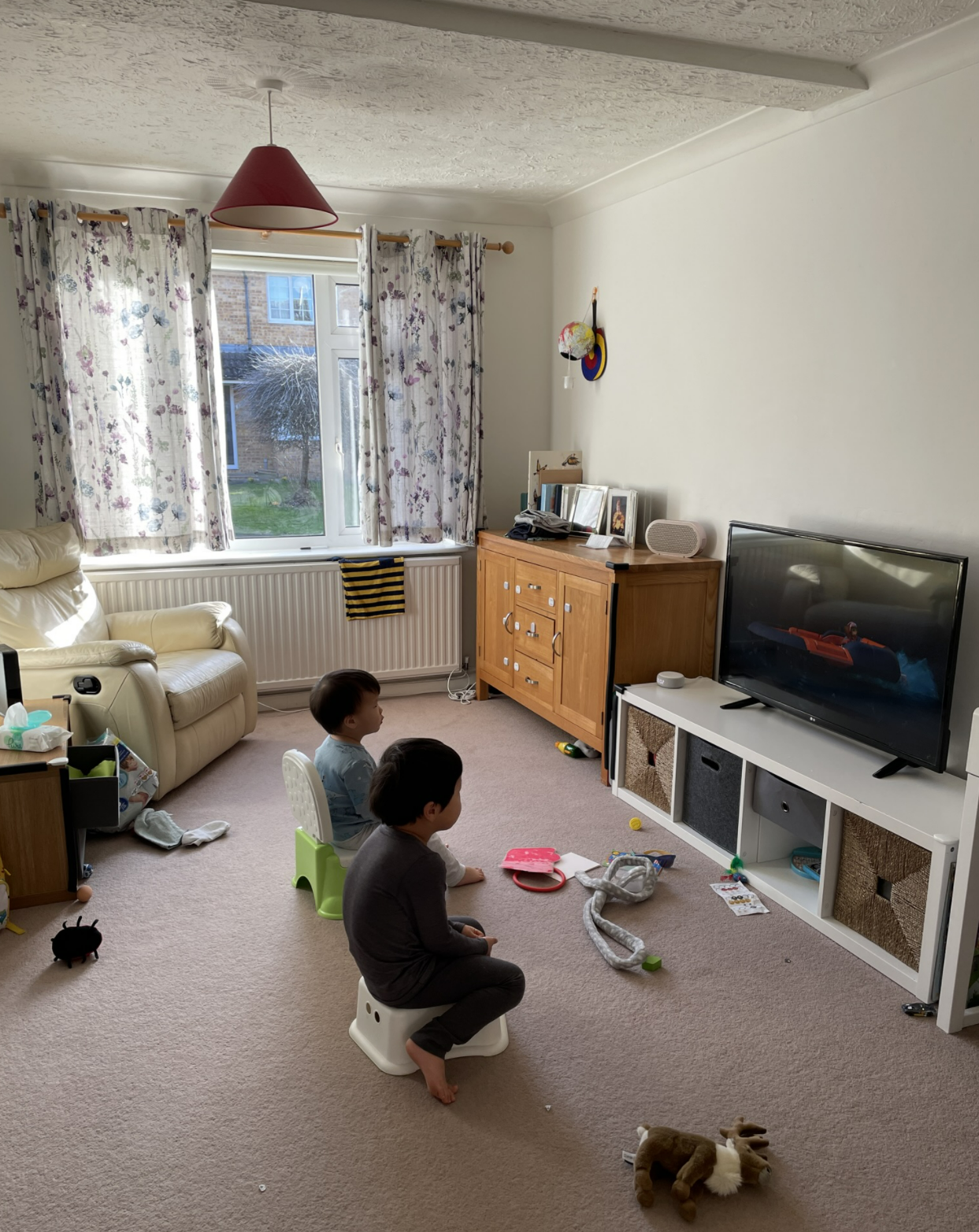 깨끗이 청소하면 뭐하나. 더러워지는 데는 한 시간도 걸리지 않는다. 아니, 10분으로도 충분하다. 깨끗해야 더럽히는 맛이 더 있는 것일까. 이내 집을 어지럽히고 한마음이 되어 티비를 시청 중인 두 아이들.