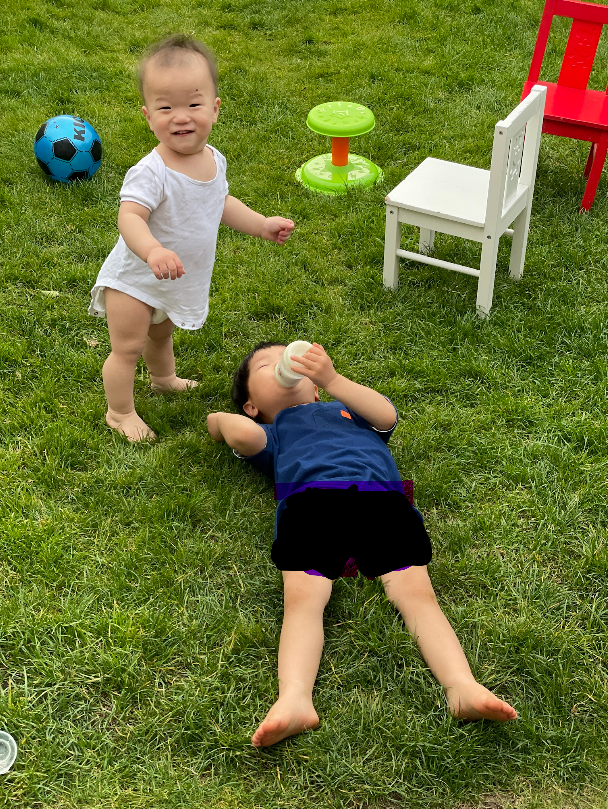저희 아이는 작년 초만해도 이렇게 아기아기한 느낌이었습니다. 저 때 저희가 아직 분유를 안 뗐나봐요. 동생은 우유 생각도 없는데 형아인 잭이 가든에 드러누워 저렇게 동생 젖병을 빨고 있었습니다.